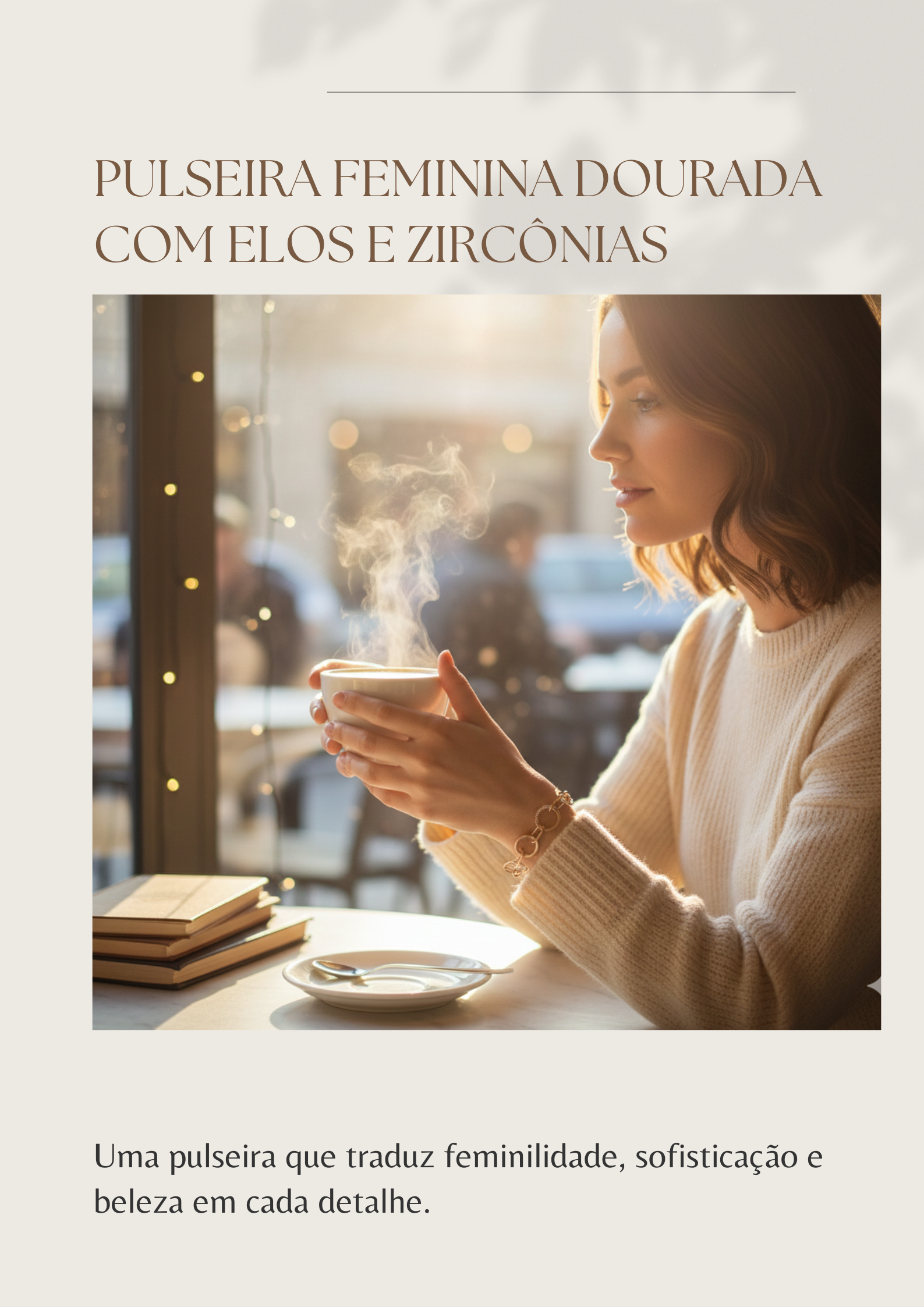 A Pulseira Dourada com Elos e Zircônias da Plenuz foi criada para mulheres jovens que gostam de acessórios marcantes na medida certa. Seu design une elos elegantes com delicados detalhes em zircônias, criando um brilho discreto que valoriza o pulso sem exageros.